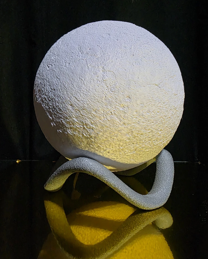 Descubra a beleza única desta luminária feita em impressão 3D que reproduz fielmente a superfície lunar, com seus crateras e relevos detalhados. Com aproximadamente 22 cm de diâmetro, ela traz um toque de mistério e encanto para qualquer espaço.